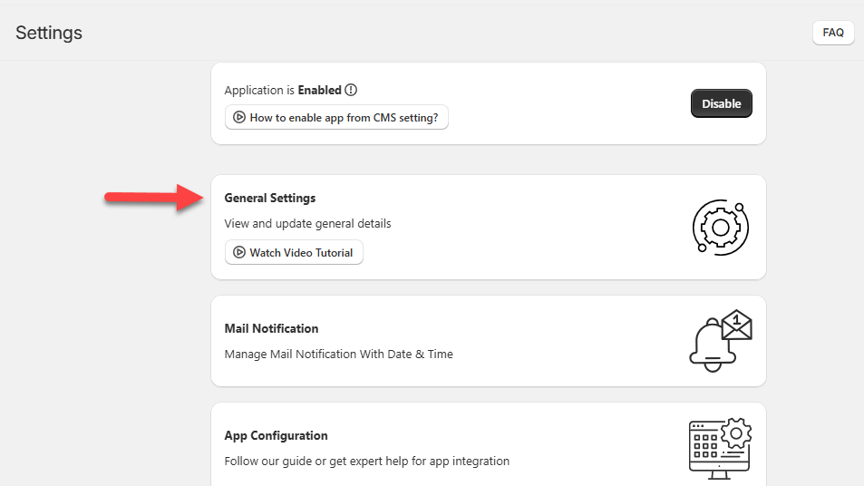 • You can view and update general configuration settings through this section.