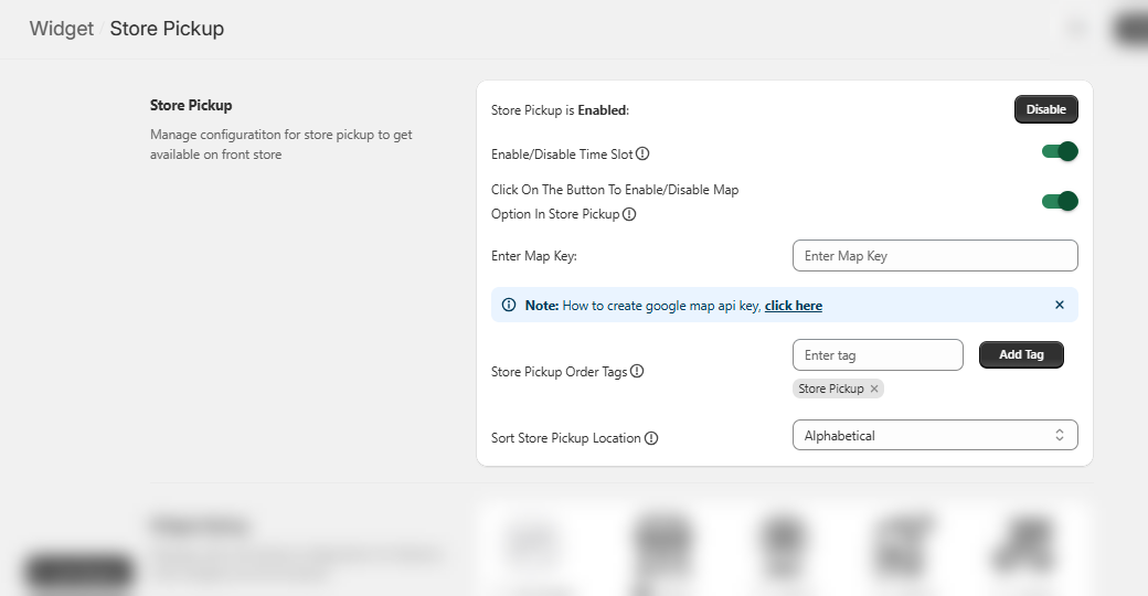 Now, Enable the Time Slot. If Map Option in Store Pickup is Enabled, a Map Key field will be displayed where you can enter the respective key.