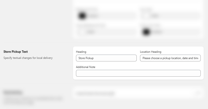 Further, proceed towards the Store Pickup Text section where you can set the Heading, Location Heading and Additional Note.