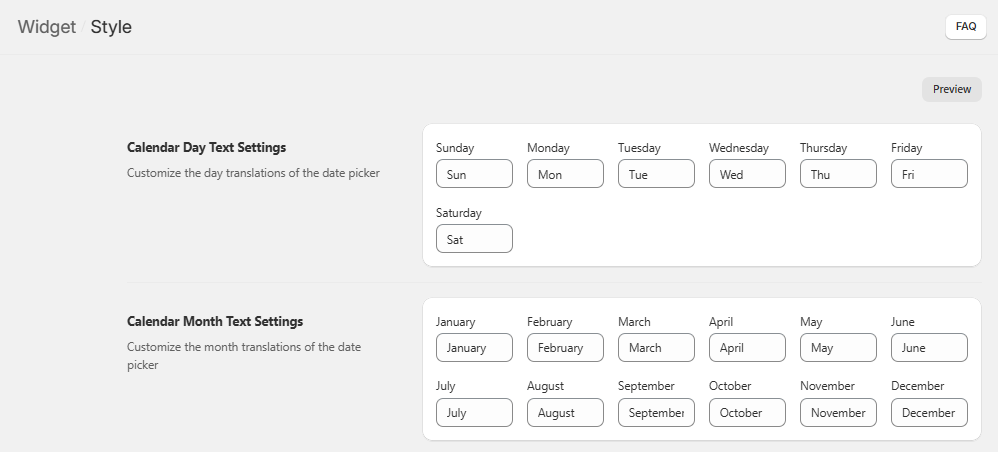 Further, the section – Calendar Month Text Settings section consists of fields where you can enter the months as you want them to appear on the calendar. For example: January -> Jan, February -> Feb, March -> Mar and so on.